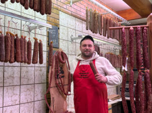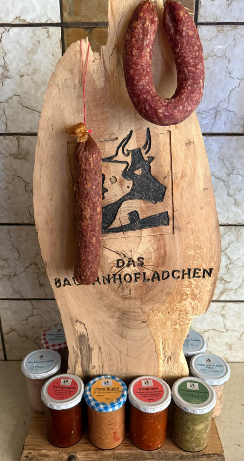 Fleisch- und Wurstwaren100 % regional Von Strohschweinen aus artgerechter Haltung auf regionalen Bauernhöfen Regionale Schlachtung und kurze Transportwege Traditionelle Herstellung und Rezepte Ohne Geschmacksverstärker, glutenfrei Hausmacher Ahle Wurscht Strack, dick oder rund geräuchert Strack, dick oder rund luftgetrocknetHausmacher Wurscht im Glas Blutwurst Leberwurst Sülze Cornedbeef Schinkenwurst Leberkäse nomal, Pizza, Chili, Zwiebel Mett in GeleeHausmacher Fertiggerichte im Glas Currywurst Bolognese Rouladen Gulasch Pizzasuppe Weckewerk