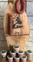 Fleisch- und Wurstwaren100 % regional Von Strohschweinen aus artgerechter Haltung auf regionalen Bauernhöfen Regionale Schlachtung und kurze Transportwege Traditionelle Herstellung und Rezepte Ohne Geschmacksverstärker, glutenfrei Hausmacher Ahle Wurscht Strack, dick oder rund geräuchert Strack, dick oder rund luftgetrocknetHausmacher Wurscht im Glas Blutwurst Leberwurst Sülze Cornedbeef Schinkenwurst Leberkäse nomal, Pizza, Chili, Zwiebel Mett in GeleeHausmacher Fertiggerichte im Glas Currywurst Bolognese Rouladen Gulasch Pizzasuppe Weckewerk