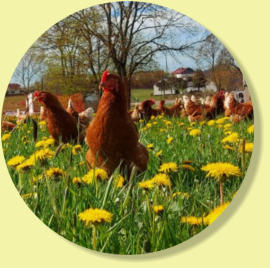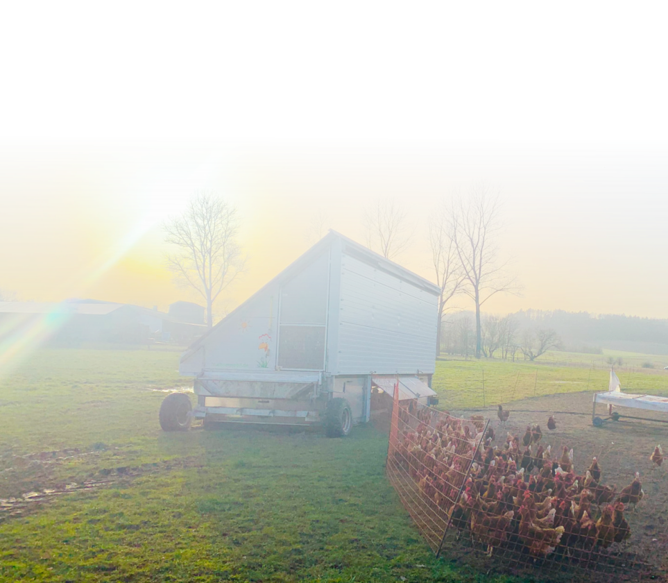 Gesunde Wiesen, gesunde Hühner, gesunde BIO Eier… natürlich aus mobiler Freilandhaltung! Unsere ökologische Landwirtschaft wird seit 1999 geführt. Sie ist BIO-zertifiziertl. Seit 2019 haben wir die Hühner "mobil gemacht". Im August 2020 ist unser zweites Hühnermobil angekommen. Unsere Hühnermobile werden von uns mit dem Traktor wöchentlich auf wechselnde Weiden gebracht. So werden gesunde Grasnarben und eine parasitenfreie Umgebung für unsere Bioland-Hennen gewährleistet. Für die artgerechte Haltung bedanken sich die Hühner mit natürlich geschmackvollen Eiern.