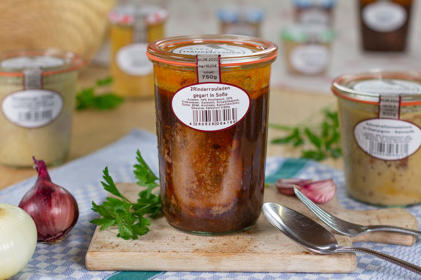 sorgfältig vermengt wird. Das merken Sie sofort am Geschmack! Diese Fleischverarbeitung kommt aus der Tradition der Hausmetzger. Dadurch behält das Fleisch viel mehr von seinem